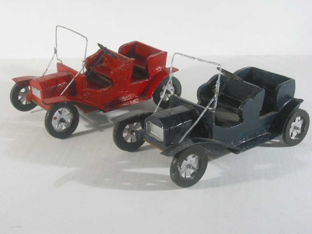 Какие же у нас были модели? Дмитрий Алексеевич всё для нас придумал, в рамках уже знакомых технологий. У себя на заводе он нарезал заготовки днища, из хорошей ровной тонкой 3 мм фанеры, надо было только подровнять форму по угольнику; из фанеры потолще, где-то 5 мм, он резал идеально круглые заготовки колёс, из фанеры 10 мм столь же идеальные «кубики» для крепления осей к шасси, для осей уже было отработанное на стендовых моделях решение – латунная (просто потому что её было завались) проволока Ф2,5 мм с нарезанной на концах резьбой и затянутыми между 2 гаек колёсами. Так крепились колёса на «Форд-Т», ещё одной модели-«каталке», который я уже не делал по возрасту.
