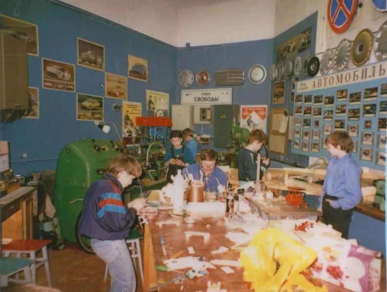 В 1987 году я, после года в начальном техническом моделировании, где был самым маленьким (я был первоклассником, а вся группа была второклассники), пришёл в автомодельный кружок, где снова оказался самым младшим. Педагог кружка Назаров Дмитрий Алексеевич работал модельщиком на НПО «Молния», которое занималось сборкой «Бурана», и из чьих ворот он и отправлялся в путь (последний), а кружок он вёл вечерами два раза в неделю, на полставки по совместительству. Вообще наш КЮТ был основан в конце 50-х годов, как подшефное учреждения машиностроительного завода им. Чернышева «Красный Октябрь» (не путать с кондитерской фабрикой), в народе именуемый как «пятисотка». Это был «ящик», занимавшийся производством и капремонтом авиадвигателей, градообразующее предприятие для тогда ещё города Тушино. «Пятисотка», «Молния», ТМЗ – с этими заводами была связана жизнь примерно каждого тушинца. Если там не работал кто-то в семье – так обязательно работал сосед. Потом, в нулевые, ещё долго на развалах у метро «Тушинская» пенсионеры, бывшие заводчане, торговали вынесенным когда-то с заводов инструментом.
